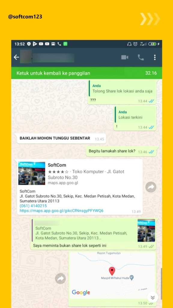 • Klik Hubungi Softcom. Nomor Telpon, Whatsapp, Map, Kotak Pesan.