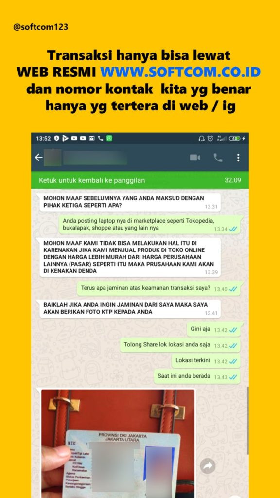 Di bawah ini adalah salah satu contoh dari kasus upaya penipuan belanja online atas nama Softcom yang telah terjadi.