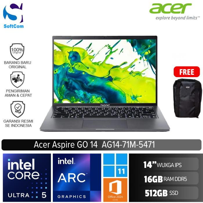 Acer Aspire Go 14 AG14-71M-5471/Intel Core Ultra 5-155H/16GB/512GB SSD/14″ WUXGA/Win 11 Home+OHS 2024-Space Gray