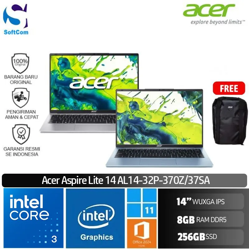 ![Acer Aspire Lite 14 AL14-32P-370Z 37SA /Intel Core 3-N355/8GB/256GB SSD/14" WUXGA IPS/Win 11 Home+OHM 2024+M365 [AL14-32P-370Z | AL14-32P-37SA] - Image 6](https://www.softcom.co.id/wp-content/uploads/2025/08/br-m036969-00039_acer-aspire-lite-al14-32p-37sa-370z-intel-core-3-n355-8gb-256gb-ssd-14-wuxga-ips-w11_full05-f8278f84.webp)
