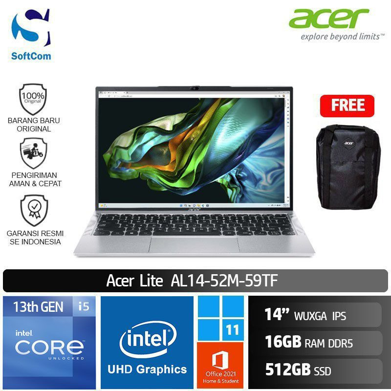 Acer Aspire Lite AL14-52M-59TF/Intel Core i5-1334U/16GB/512GB SSD/14″ WUXGA IPS/Win 11 Home+OHS 2021/Pure Silver