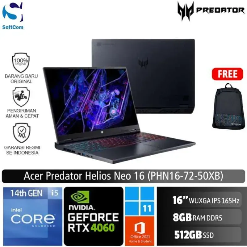 Acer Predator Helios Neo 16 PHN16-72-50XB /Core i5-14500HX/8GB/512GB SSD/GeForce RTX 4060 8GB/16″ WQXGA 165Hz/Win 11 Home+OHS 2021/Black