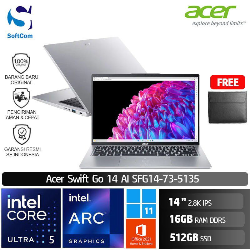 Acer Swift Go 14 AI SFG14-73-5135 /Ultra 5 125H/16GB/512GB SSD/14″ 2.8K IPS/Win 11 Home+OHS 2021/Pure Silver