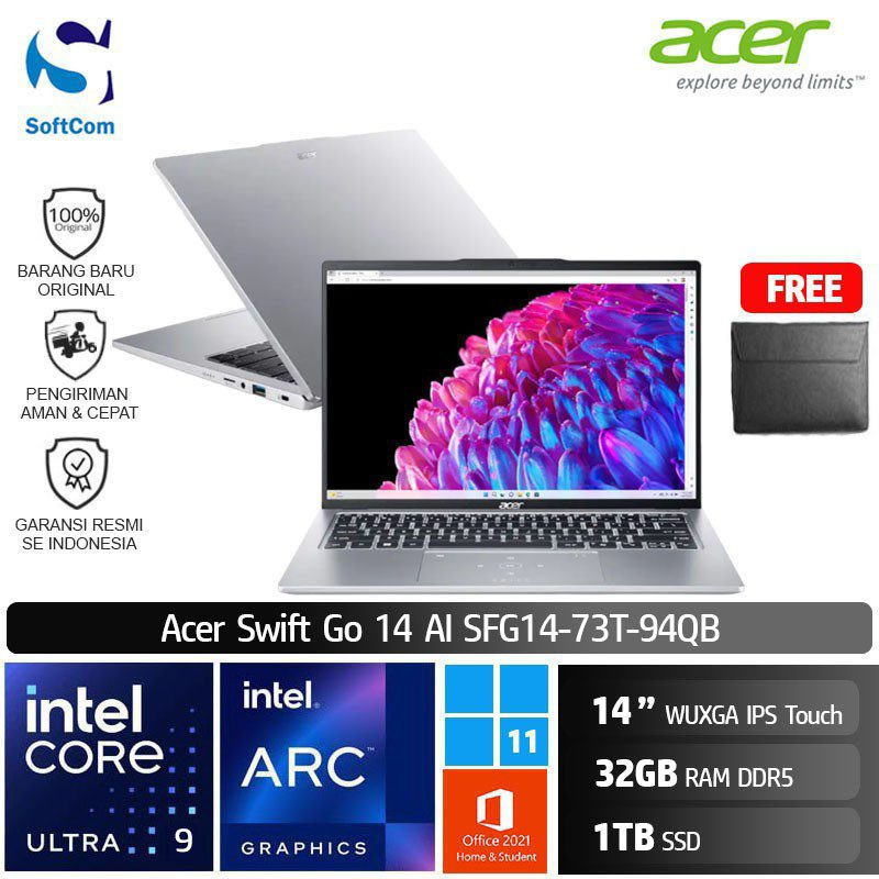 Acer Swift Go 14 AI SFG14-73T-94QB /Ultra 9 185H/32GB/1TB SSD/14″ WUXGA Touch/Win 11 Home+OHS 2021/Pure Silver