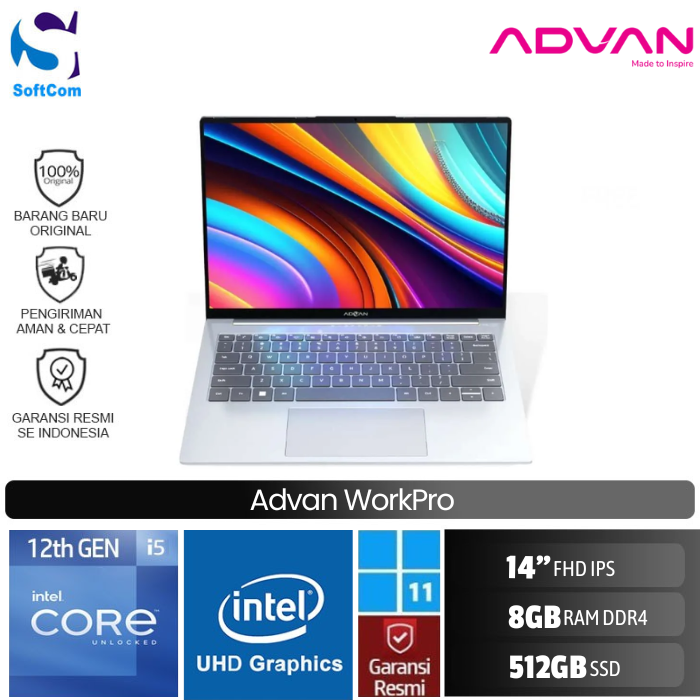 Advan Workpro i5 12450H/8GB/512GB SSD/14″ Inch FHD IPS/Windows 11 Home