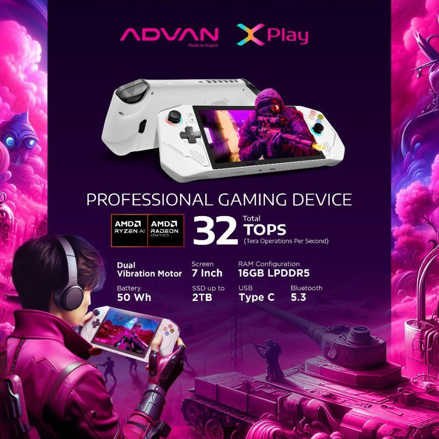 Advan XPlay Gaming HandHeld /Ryzen 7 7840/16GB/512GB SSD/7″ FHD IPS 120Hz/Win 11 Home