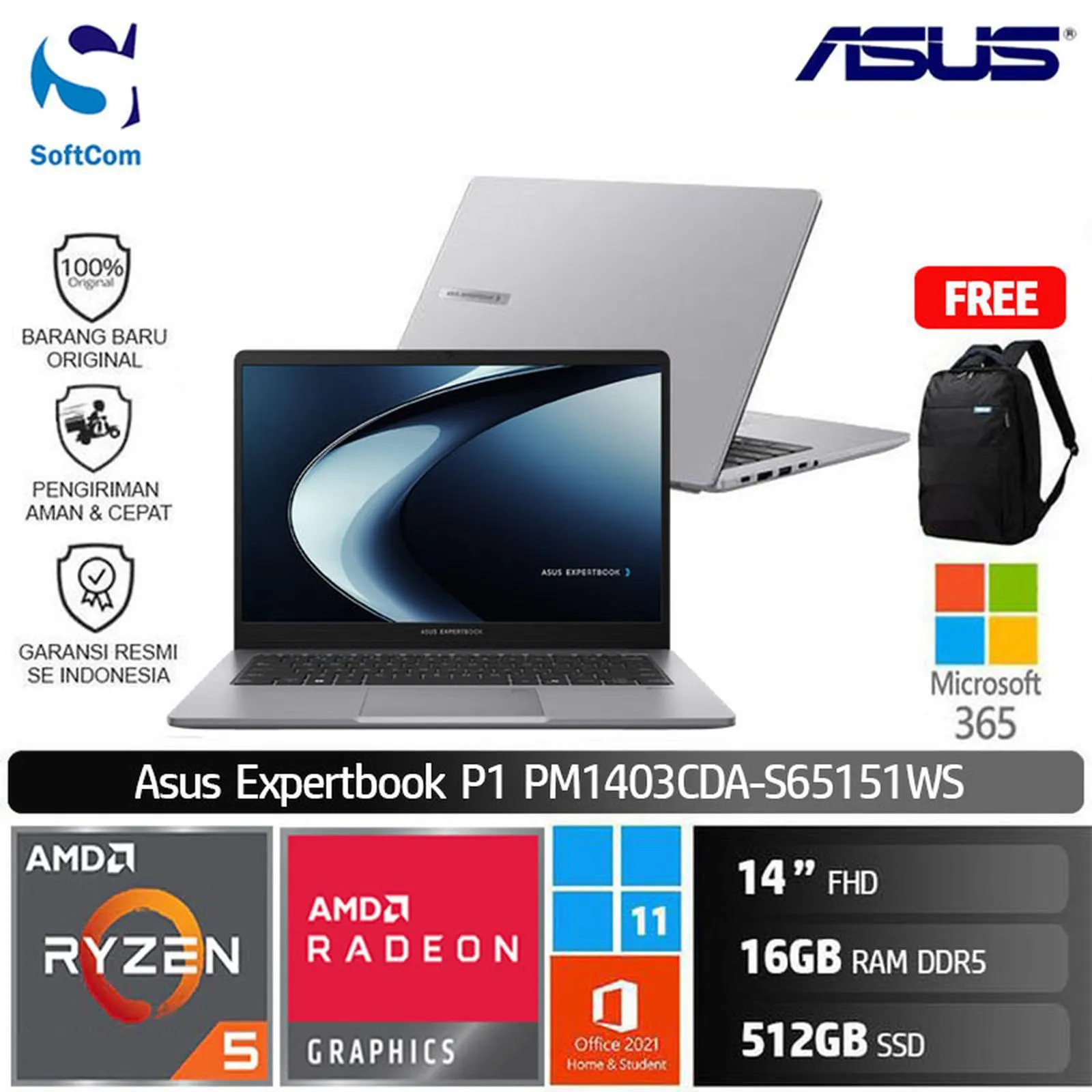 Asus Expertbook P1 PM1403CDA-S65151WS/Ryzen 5-150/16GB/512GB SSD/14″ FHD/Win 11 Home+OHS 2021+M365/Misty Grey