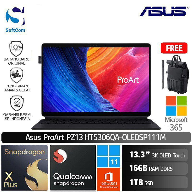 Asus ProArt PZ13 HT5306QA-OLEDSP111M/Snapdragon X1 Plus/16GB/1TB SSD/13.3″ 3K OLED Touch/Win 11 Home+OHM 2024+M365/Nano Black