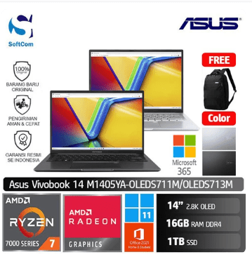 ![Asus Vivobook 14 M1405YA OLEDS711M OLEDS713M/Ryzen 7-7730U/16GB/1TB SSD/14" 2.8K OLED/Win 11 Home+OHS 2021/[ M1405YA-OLEDS711M | M1405YA-OLEDS713M ]](https://www.softcom.co.id/wp-content/uploads/2024/12/Asus-M1405YA-OLEDS711M-OLEDS713M-1.png)