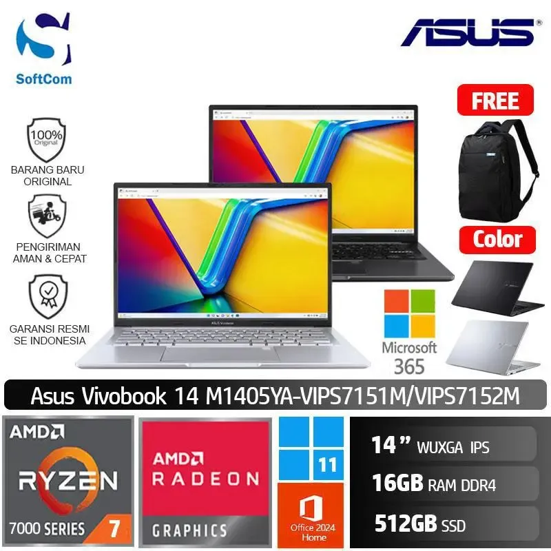 ![Asus Vivobook Go 14 E1404FA FHD321 FHD322 FHD323/AMD Ryzen 3-7320U/8GB/256GB SSD/14" FHD/Win 11 Home+OHS 2021/[ E1404FA-FHD321 | E1404FA-FHD322 | E1404FA-FHD323 ]](https://www.softcom.co.id/wp-content/uploads/2023/04/Asus-E1404FA-FHD321-FHD322-300x300.webp)