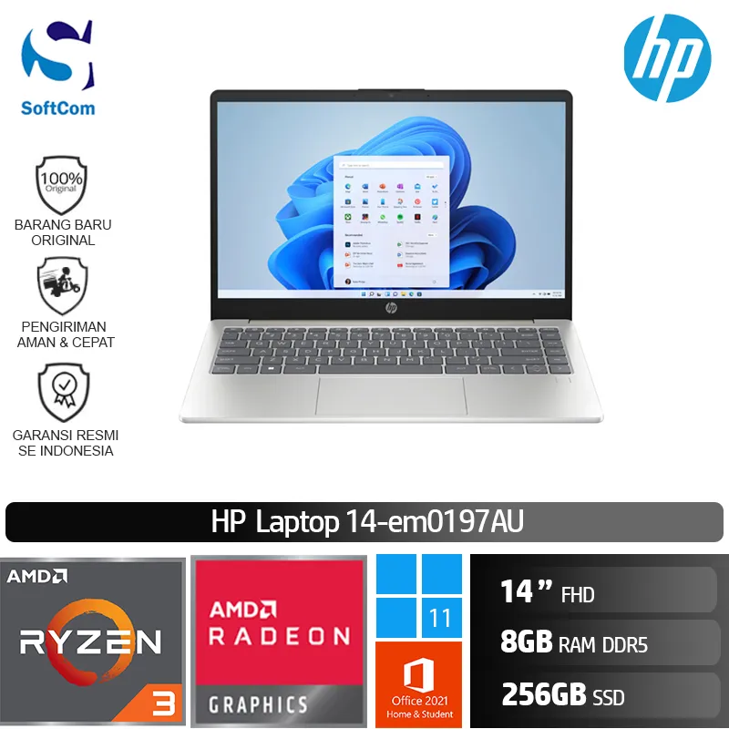 HP 14-em0197AU /AMD Ryzen 3-7320U/8GB/256GB SSD/14″ FHD/Win 11 Home+OHS 2021/ Silver