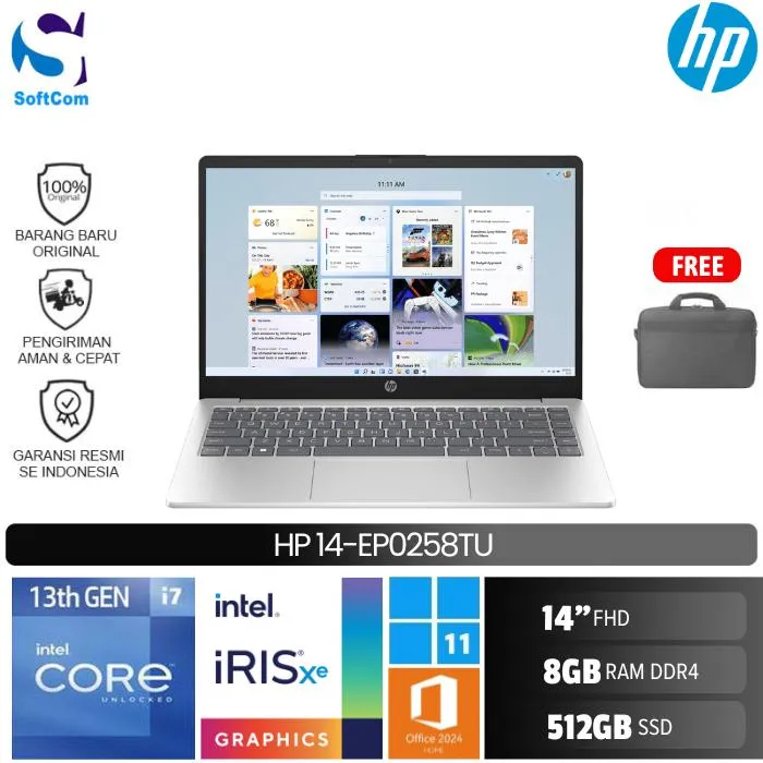 HP 14-ep0258TU /Core i7-1355U/8GB/512GB SSD/14″ FHD IPS/Win 11 Home+OHM 2024/Silver