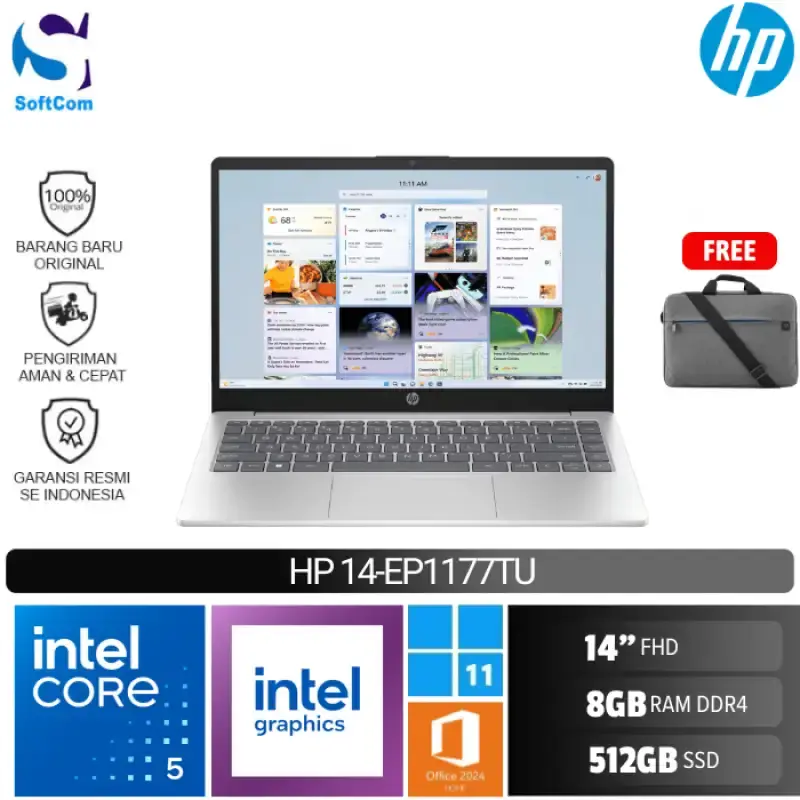 HP 14-ep1177TU/Intel Core 5-120U/8GB/512GB SSD/14″ FHD/Win 11 Home+OHM 2024+M365-Silver