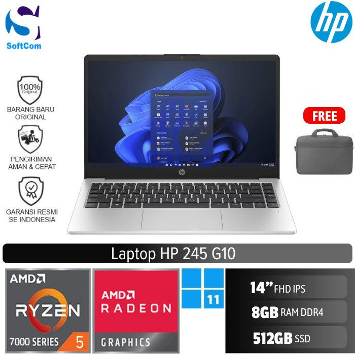 HP 245 G10 /Ryzen 5 7520U/8GB/512GB SSD/14″ FHD/Win 11 Home/Silver Plastic