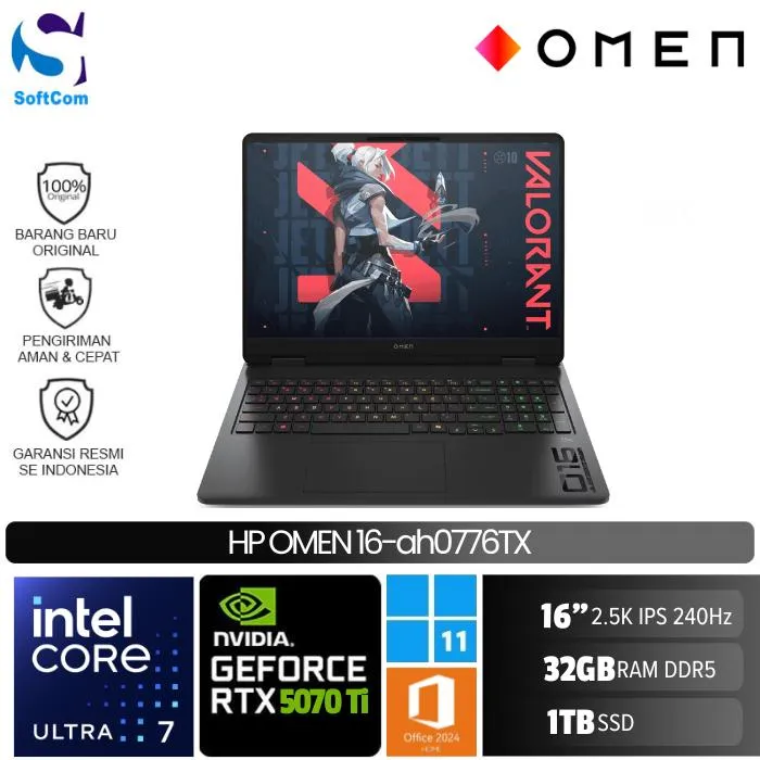HP Omen 16-ah0776TX/Core Ultra 7-255HX/32GB/1TB SSD/GeForce RTX 5070 Ti 12GB/16″ 2.5K/Win 11 Home+OHM 2024/Shadow Black