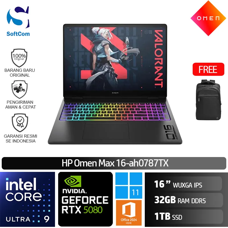 HP OMEN MAX 16 ah0787TX/Core Ultra 9-275HX/32GB/1TB SSD/GeForce RTX 5080 16GB/16″WQXGA/Win 11+OHM 2024+M365