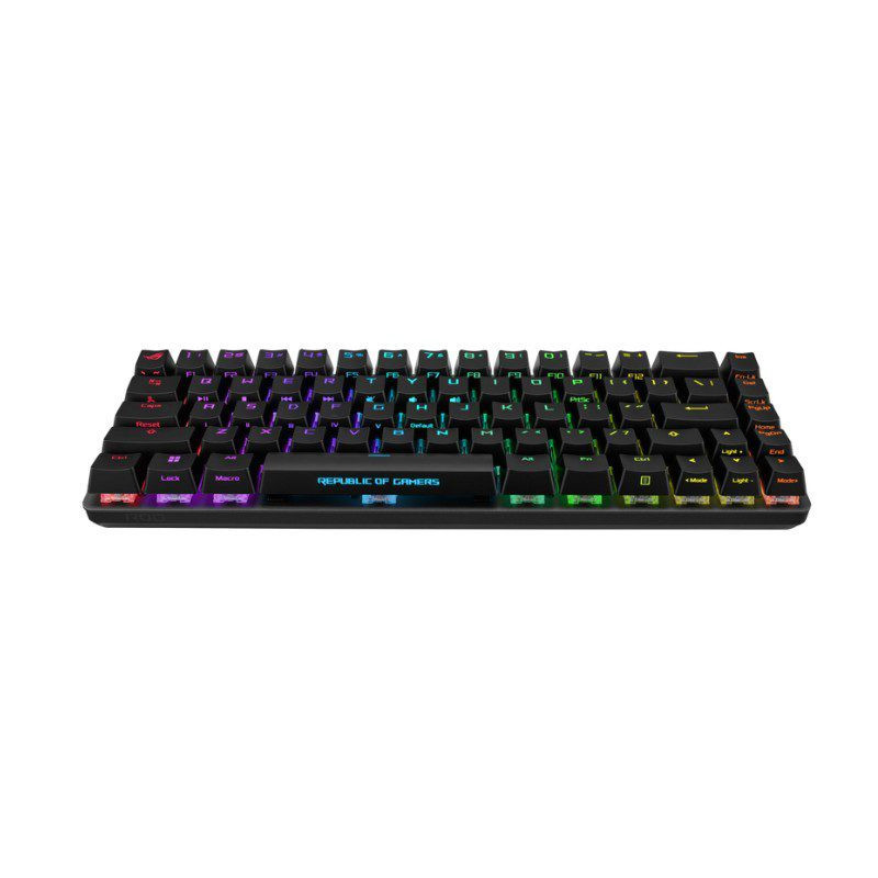 - ROG NX mechanical switches: Lubricated stem and housing for smoother clicks and to eliminate bouncing noise respectively, fast actuation and ROG-tuned force curves for great, consistent keystrokes