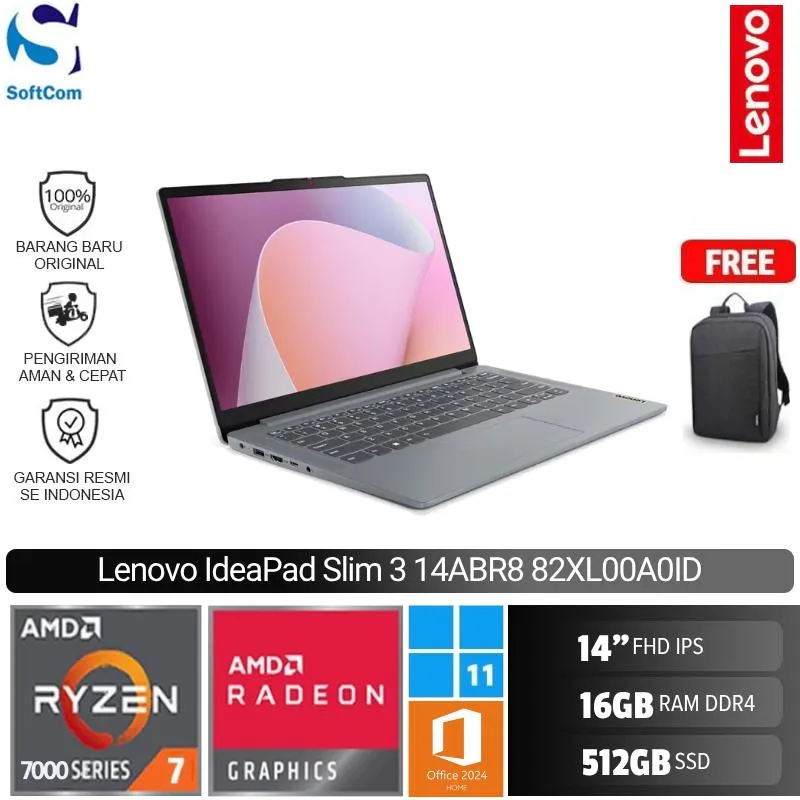 Lenovo IdeaPad Slim 3 14ABR8 82XL00A0ID/Ryzen 7-5825U/16GB/512GB SSD/14″ FHD IPS/Win 11 Home + OHM 2024