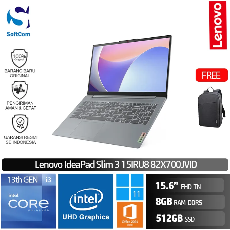 Lenovo IdeaPad Slim 3 15IRU8 82X700JVID/Intel Core i3-1315U/8GB/512GB SSD/15.6″ FHD TN/Win 11 Home + OHM 2024 + M365/ Artic Grey