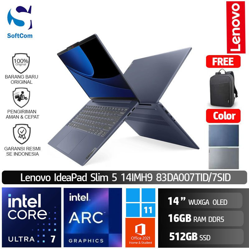 ![Lenovo IdeaPad Slim 5 14IMH9 7TID 7SID /Ultra 7 155H/16GB/512GB SSD/14″ WUXGA OLED/Win 11 Home+OHS 2021 [ 83DA007TID | 83DA007SID ] - Image 5](https://www.softcom.co.id/wp-content/uploads/2024/02/83DA002MID-4.jpg)