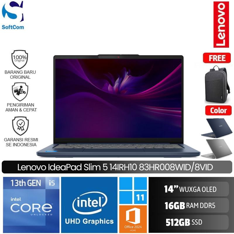 ![Lenovo IdeaPad Slim 5 14IRH10 8WID 8VID/Intel Core i5-13420H/16GB/512GB SSD/14" WUXGA OLED/Win 11 Home + OHM 2024 + M365/[83HR008WID I 83HR008VID] - Image 5](https://www.softcom.co.id/wp-content/uploads/2025/06/bbc449e9cc6b4d9d89bca47108b1da9e.jpeg)