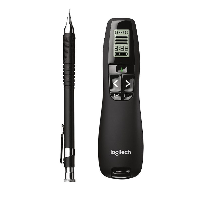 Logitech Wireless Presenter R800 juga memperkenalkan produk Pointer Wireless R800. Pointer seri ini membawa banyak fitur Pointer kelas profesional yang semakin memudahkan Anda saat presentasi. Logitech Presenter R800 cocok digunakan untuk mempresentasikan hasil pencapaian kerja, rancangan program, melakukan Briefing, atau digunakan saat membawakan seminar. Dengan alat Pointer nirkabel ini Anda tidak perlu bolak balik ke Notebook di meja untuk mengganti slide atau menunjukan poin penting pada materi presentasi. Logitech Presenter R800 memiliki deretan tombol pengaturan dan sinar laser yang sangat membantu saat membawakan presentasi di depan rekan kerja.