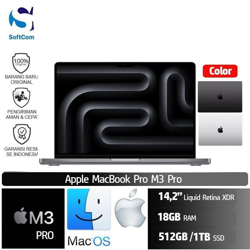 - Varian Prosesor : Apple M3 Pro chip with 11‑core CPU and 14‑core GPU / Apple M3 Pro chip with 12‑core CPU and 18‑core GPU