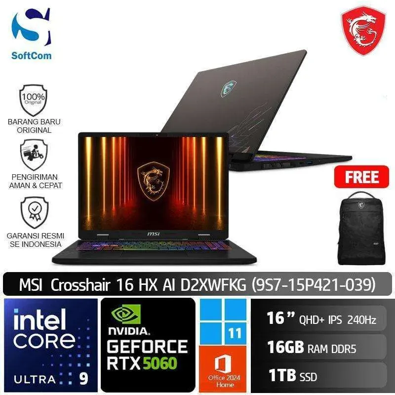 MSI Crosshair 16 HX AI D2XWFKG (9S7-15P421-039) /Intel Core Ultra 9-275HX/16GB/1TB SSD/GeForce RTX 5060 8GB/16″ QHD+ 240Hz/Win 11 Home + OHM 2024/Cosmos Grey