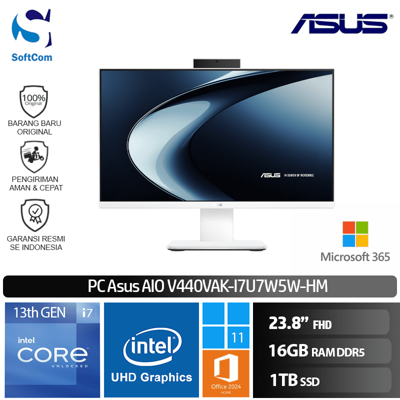 PC Asus AIO V400 V440VAK-I7U7W5W-HM/Intel Core i7-13620H/16GB/1TB SSD/23.8″/Win 11 Home + OHM 2024 + M365-White