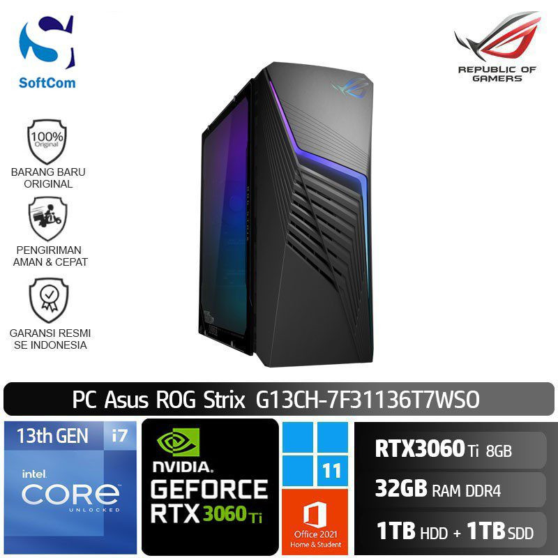 PC Asus ROG Strix G13CH-7F31136T7WSO /Core i7-13700F/32GB/1TB HDD+1TB SSD/GeForce RTX 3060 Ti 8GB/Win 11 Home+OHS/Black