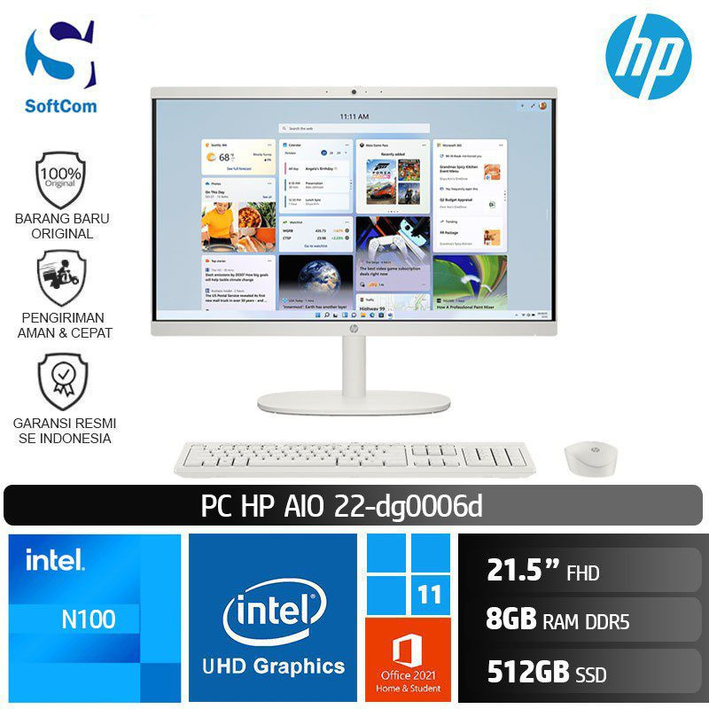 PC HP AIO 22-dg0006d/Intel N100/8GB/512GB SSD/21.5″ FHD/Win 11 Home+OHS 2021/White