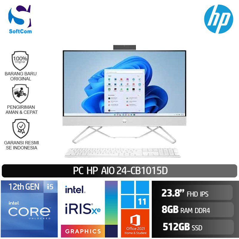 PC HP AIO 24-cb1015d /Core i5-1235U/8GB/512GB SSD/23.8″ FHD/Win 11 Home+OHS 2021/White