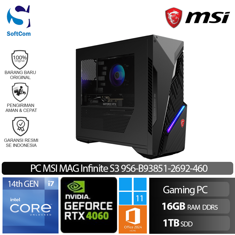 PC MSI MAG Infinite S3 9S6-B93851-2692-460/Intel Core i7-14700F/16GB/1TB SSD/GeForce RTX 4060 8GB/Win 11 Home + OHM 2024